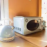 El apartamento dispone de servicio de tetera/cafetera y una cocina con horno de microondas y tetera.